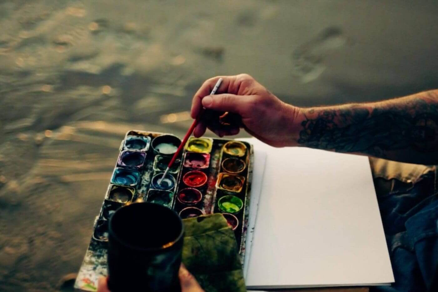 Kaufmann paints on the beach, capturing the patterns found in the details when you slow down to notice them. Image from Walk with Obi: The Coasts of California, produced by Wildbound Literary PR, directed by Alice Gu.
