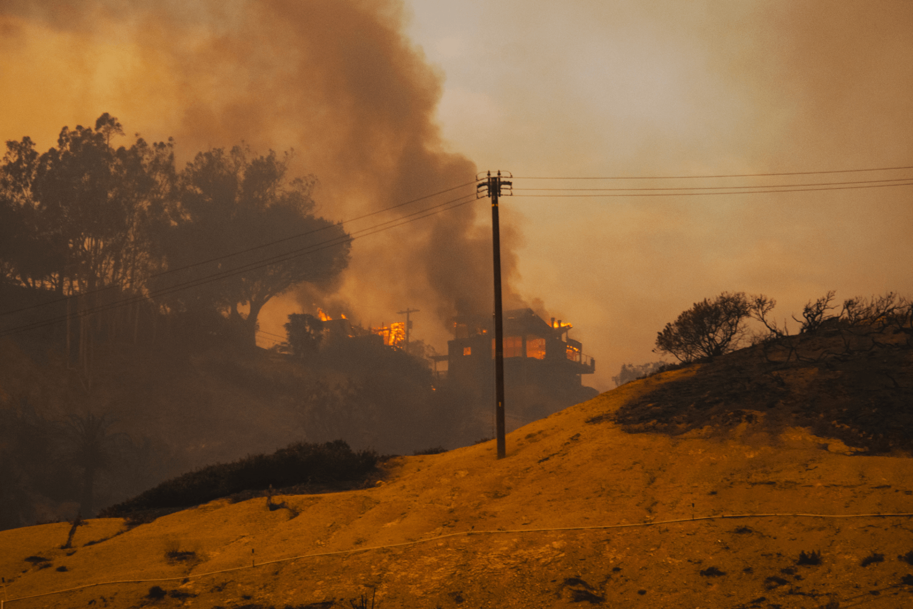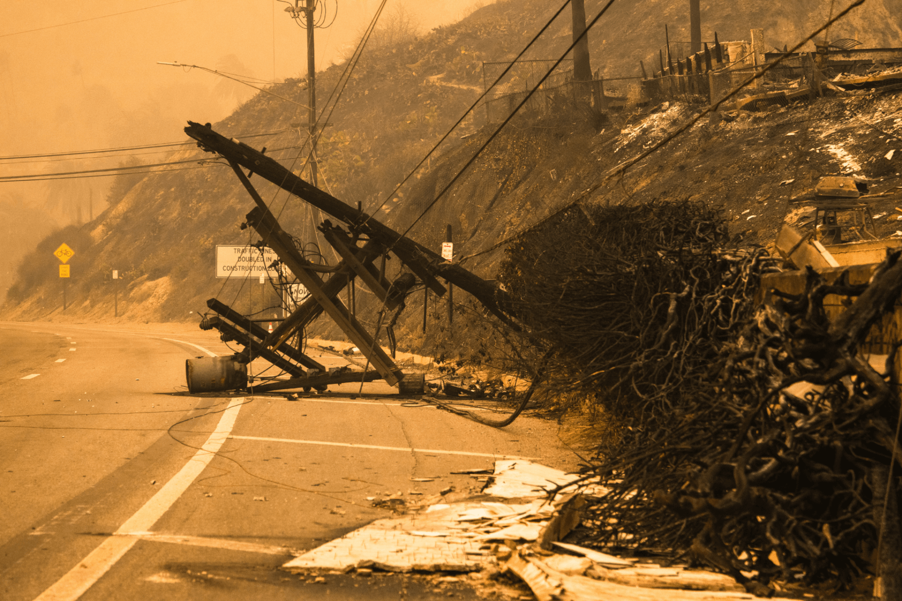 Fallen power lines line the Pacific Coast Highway. Photo by Shannon Aguiar