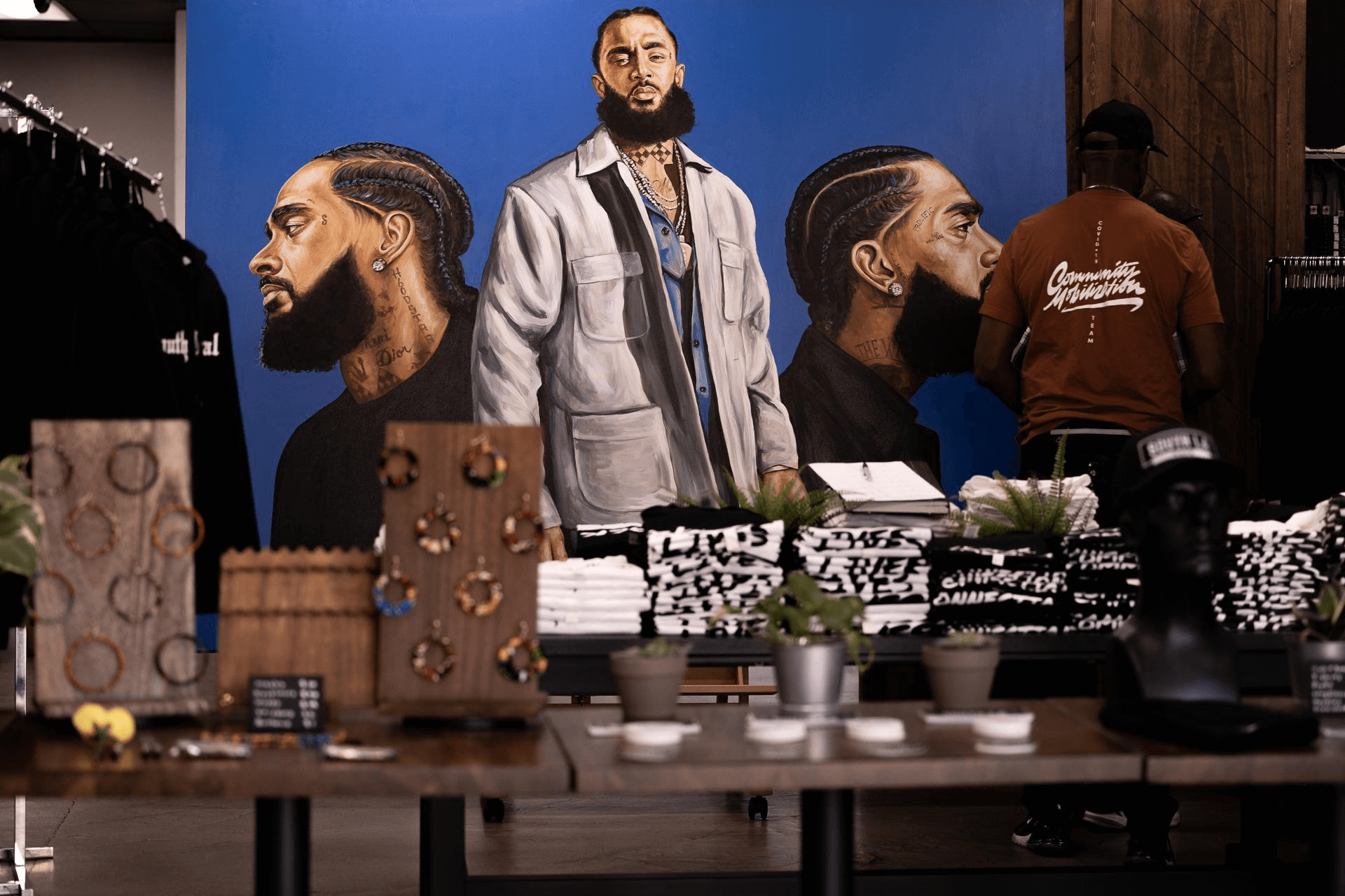It would be hard for a customer to feel anything but ease inside the Cafe. Before the COVID outbreak, the space felt like a scene from your favorite sitcom: four-person black-colored tables that always seem to be occupied, faux plants strategically placed around the room to add color and life, and music that plays at just the right volume so as to not drown out conversation. On your left, there is a small couch with a faux grass wall behind it. Look to your right, and there is a giant portrait painting of Nipsey Hustle — who Ward-Wallace actually met before his death — occupying the majority of the wall space in the conference room (or, as the owners call it, the Nipsey Hustle studio).