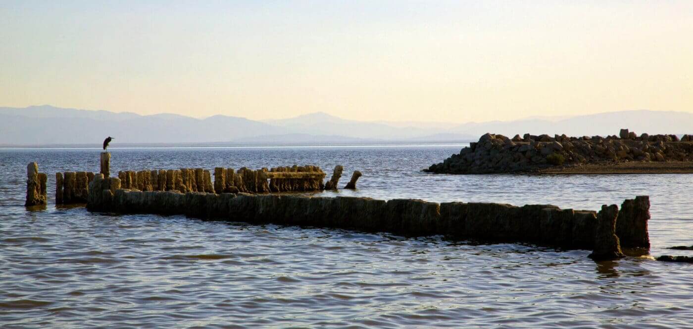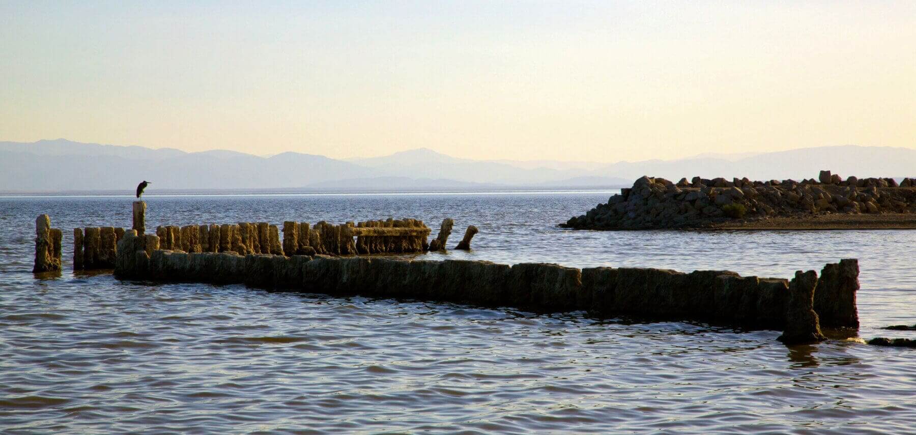 Salton Sea shoreline in 2022, at a water surface elevation of roughly -239 feet below sea level, where it remains today, according to the live data collected by United States Geological Survey and a salinity of 60 ppt according to the most current data from The Salton Sea Authority. Click here access the full gallery. Photo by Steven Gute