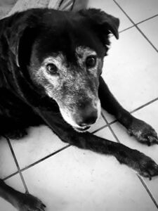 Perhaps no other dog we took in was more in need of justice than Honey. She’s a black Lab mix, the third of the five dogs we kept, and the most complicated. To say she isn’t heartwarming would be wrong. She is very grateful, as well as obedient, patient, sensitive and eager to please — to me. Everyone else is another matter. Honey has a lot of trouble with trusting. Over the years she has nipped, bitten and barked code-red warnings at a whole array of people, family, friends and strangers alike. For 12 years I’ve had to monitor close human encounters or keep them from happening altogether because so much — and so little — can trigger the fear and insecurity Honey’s had since she came to us at 6 months old. Insecurity runs in the background of all of her other, many wonderful qualities, like the hum of a refrigerator, ebbing to near silence at points but never going away.