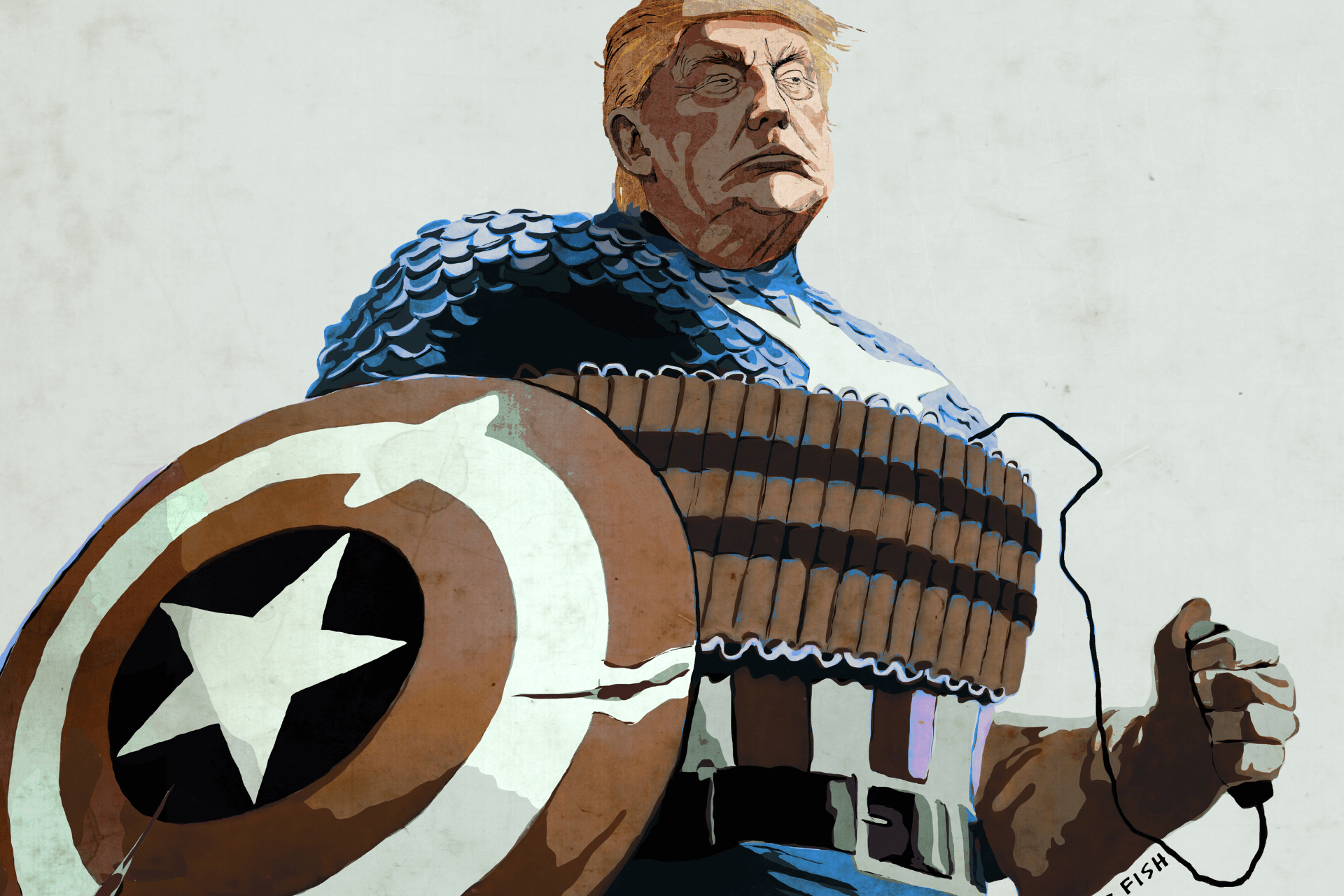 Mr. Fish — given name, Dwayne Booth — works regularly for ScheerPost.com and has contributed to outlets such as Harper’s Magazine, Vanity Fair, The Advocate, the Village Voice, and the LA Weekly. Mr. Fish’s books include And Then the World Blew Up, which features a cover drawing of President Trump dressed in a Captain America costume and a suicide bomber’s vest full of dynamite. Booth is also a lecturer at the Annenberg School for Communication at the University of Pennsylvania.
