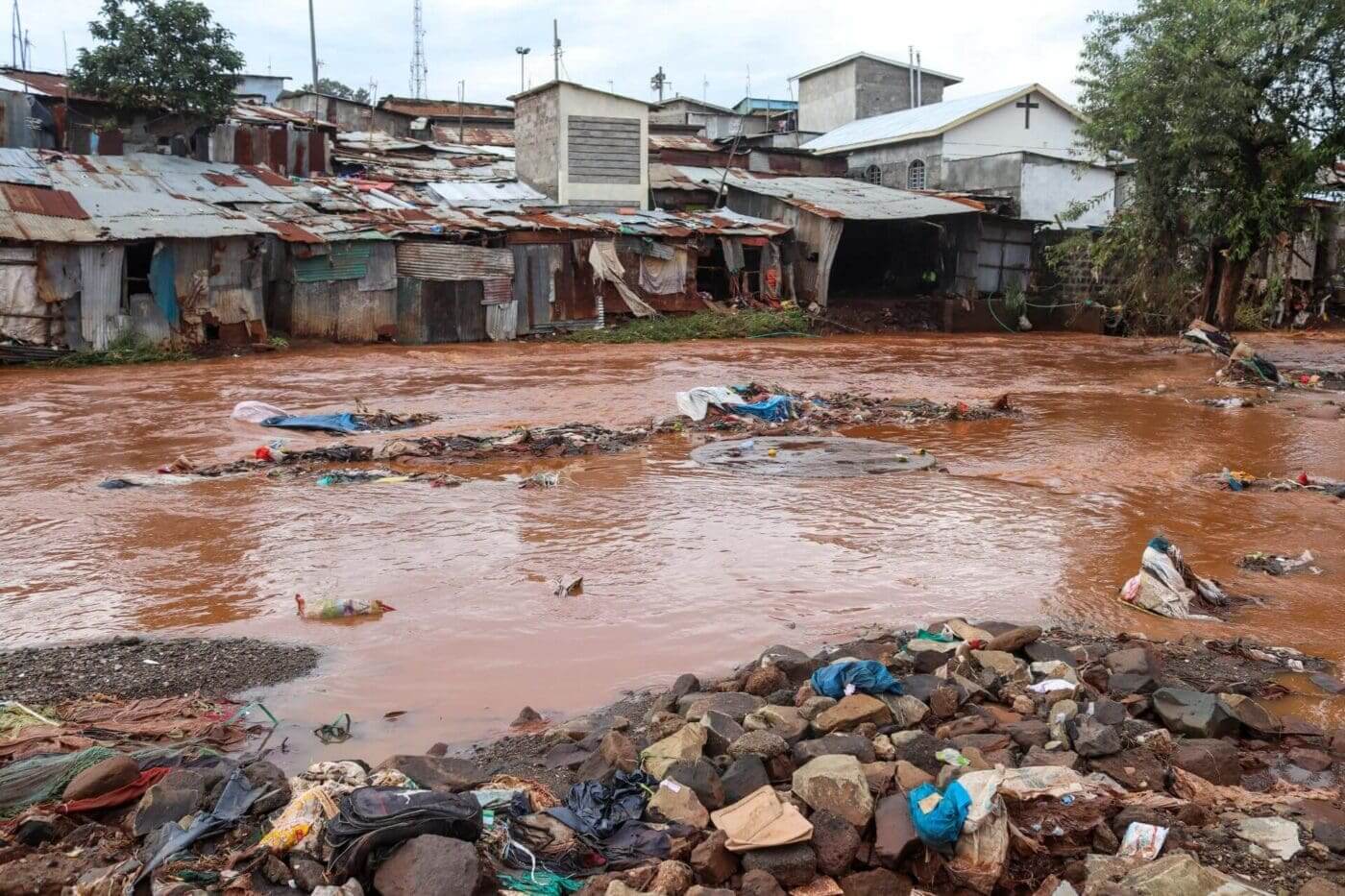 60 percent of Nairobi is slums. The largest, Kibera, is a sinuous wave of poverty that stretches as far as the eye can see. Kibera houses two million people and was built on swamp land. This wasn’t a master feat of engineering, like Venice or Amsterdam, but a city thrown together in haste. The first houses were built on the high ground, but over the years, an unrelenting series of lean-tos have been added, stopping only at the waterline. In the dry season, Nairobi’s fine red dust filters through the open windows, turning every once-white shirt pink. The dust goes up and down and around, painting the entire vista in copper. The air is thickly acidic, catching at your throat. It makes you want to claw your way out of this stifling hell, scratch the dust from your skin and choke the fetid odor of feces and rotted food from your mouth. It is as if, by showering deeply, you could ignore the misery man has brought upon himself — and upon Nairobi. In the wet season, residents have no escape.