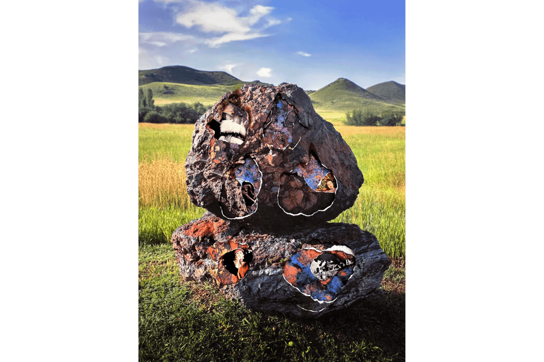 White is a 2023 Hopper Prize finalist and the recent winner of the Brand Library & Art Center’s 2024 Associates’s Award for their Brand 52 exhibit. Her work has been exhibited throughout North America and Europe. White is also the current faculty chair of the photography department at the New York Film Academy in Burbank, California. Her 2022 solo show Excavations presents rocks as natural symbols of truth. While rocks contain an internal history of the natural world, Excavations wrangles with the idea of cameras as complex recorders of racial inequality and innovation. White’s collage work in Excavations examines the ontological role of the camera in our history, as a violent perpetrator of oppression and as a tool for political activism for the future.
