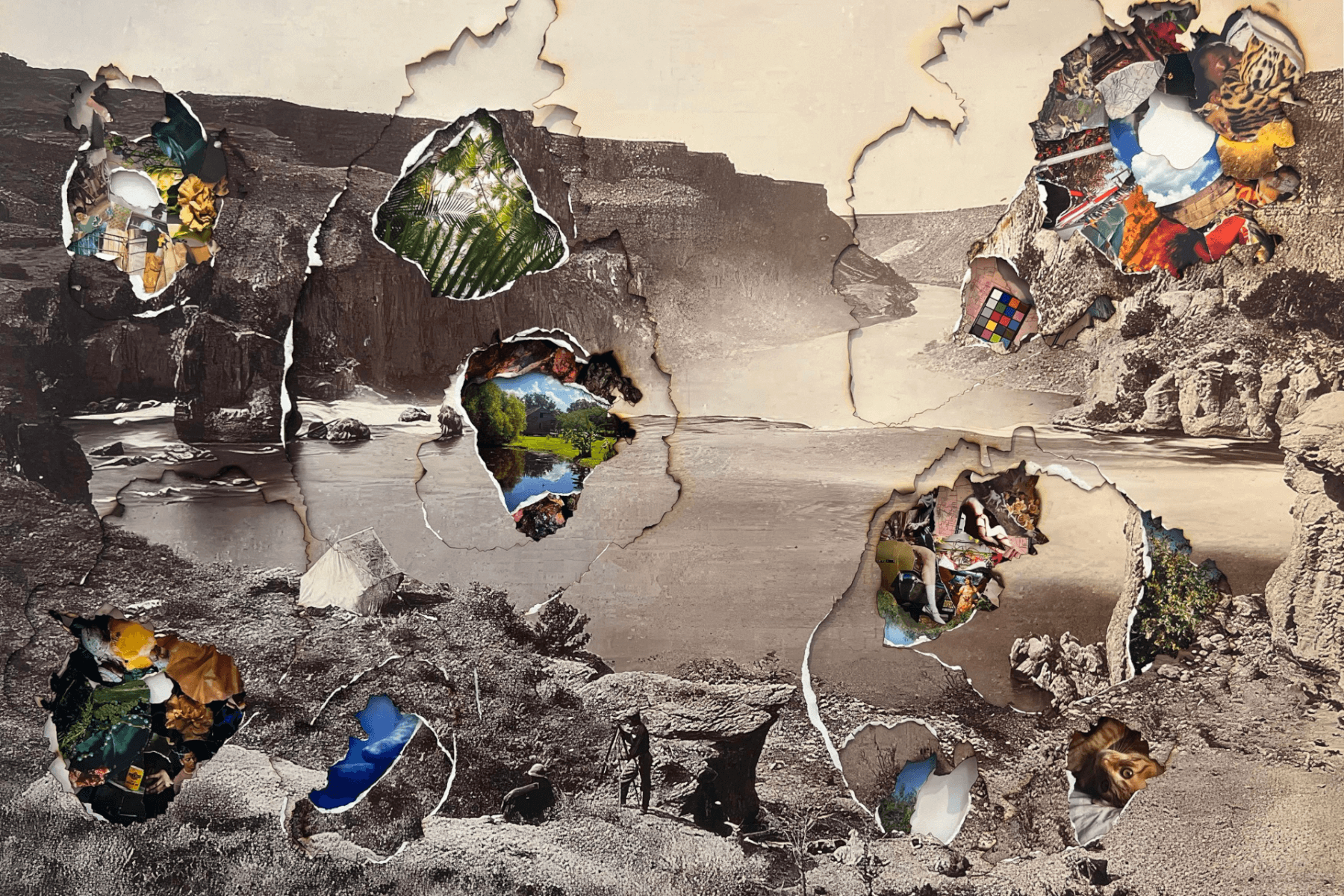Peeling back the layers of collage from White’s 2022 exhibit, Excavations. Courtesy of Pamela Garcia
