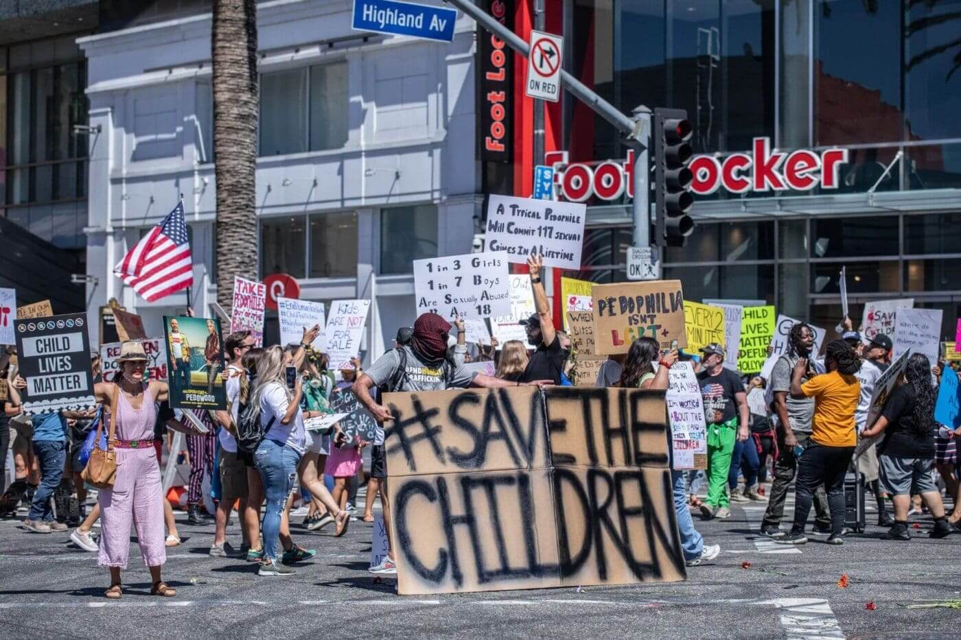 Over 100 protestors gathered for the Save the Children “Child Lives Matter” march and rally on Hollywood Blvd on July 31, 2020. Photo by Clara Mack