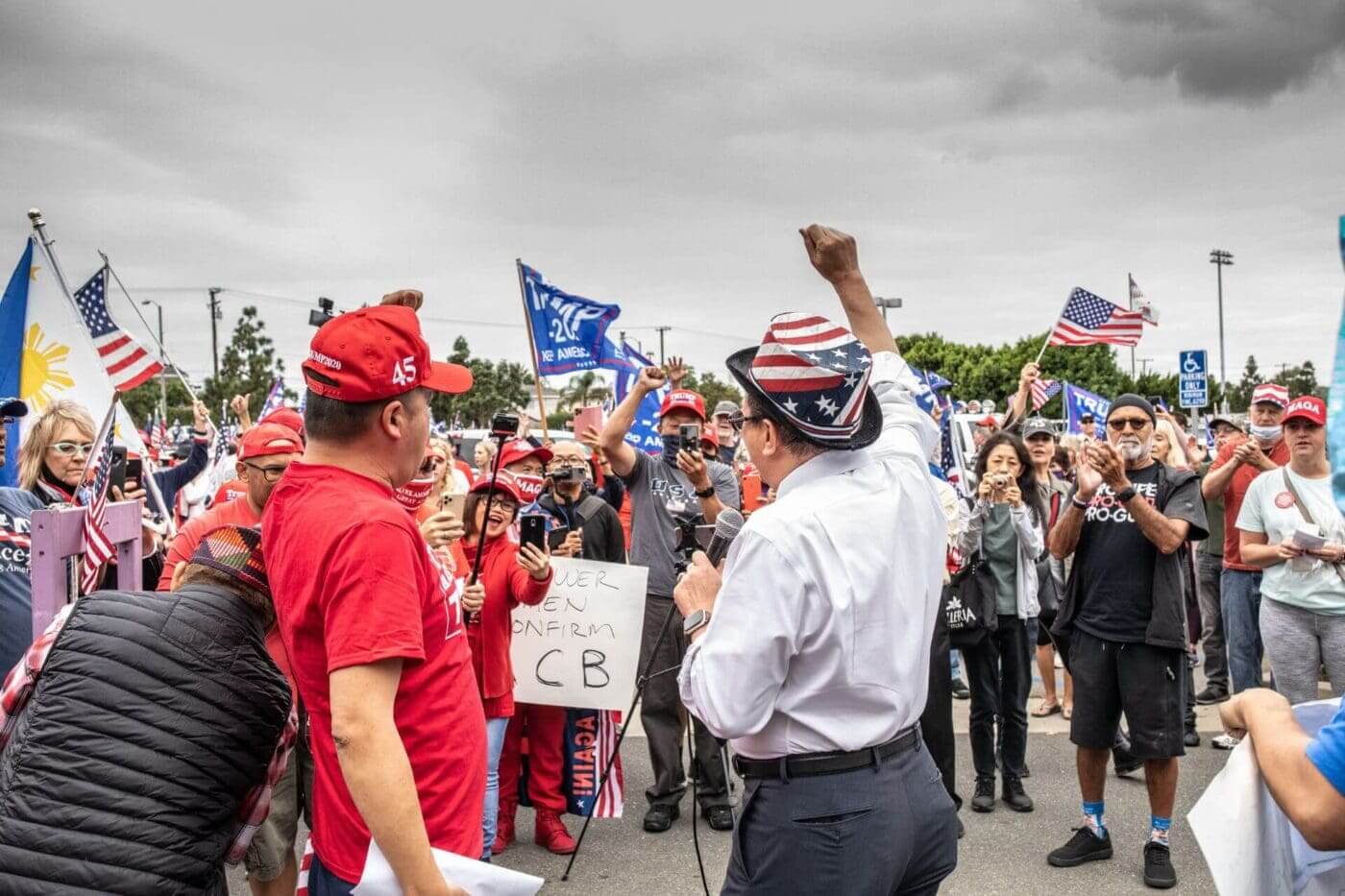 The USA Freedom Rally was part of a weekly political rally in Beverly Hills, California in the weeks leading up to the 2020 election. This photo was taken on October 31, 2020. Photo by Clara Mack